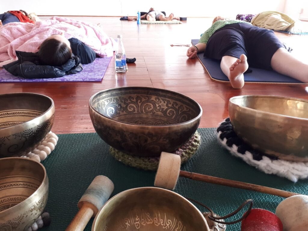 We start with a short, centering meditation, followed by some gentle stretching to open the body, as the singing bowls begin to sing their song. You are then invited to lay down and be guided into deep relaxation and rest, while immersed in pure sound vibration.
